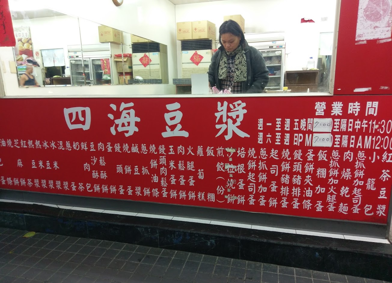這家四海豆漿店從深夜到早晨,經營時段和一般的豆漿店不一樣,蛋餅蘿蔔糕豆漿等部分的產品也不錯,唯獨服務人員的工作態度還有改善的空間。