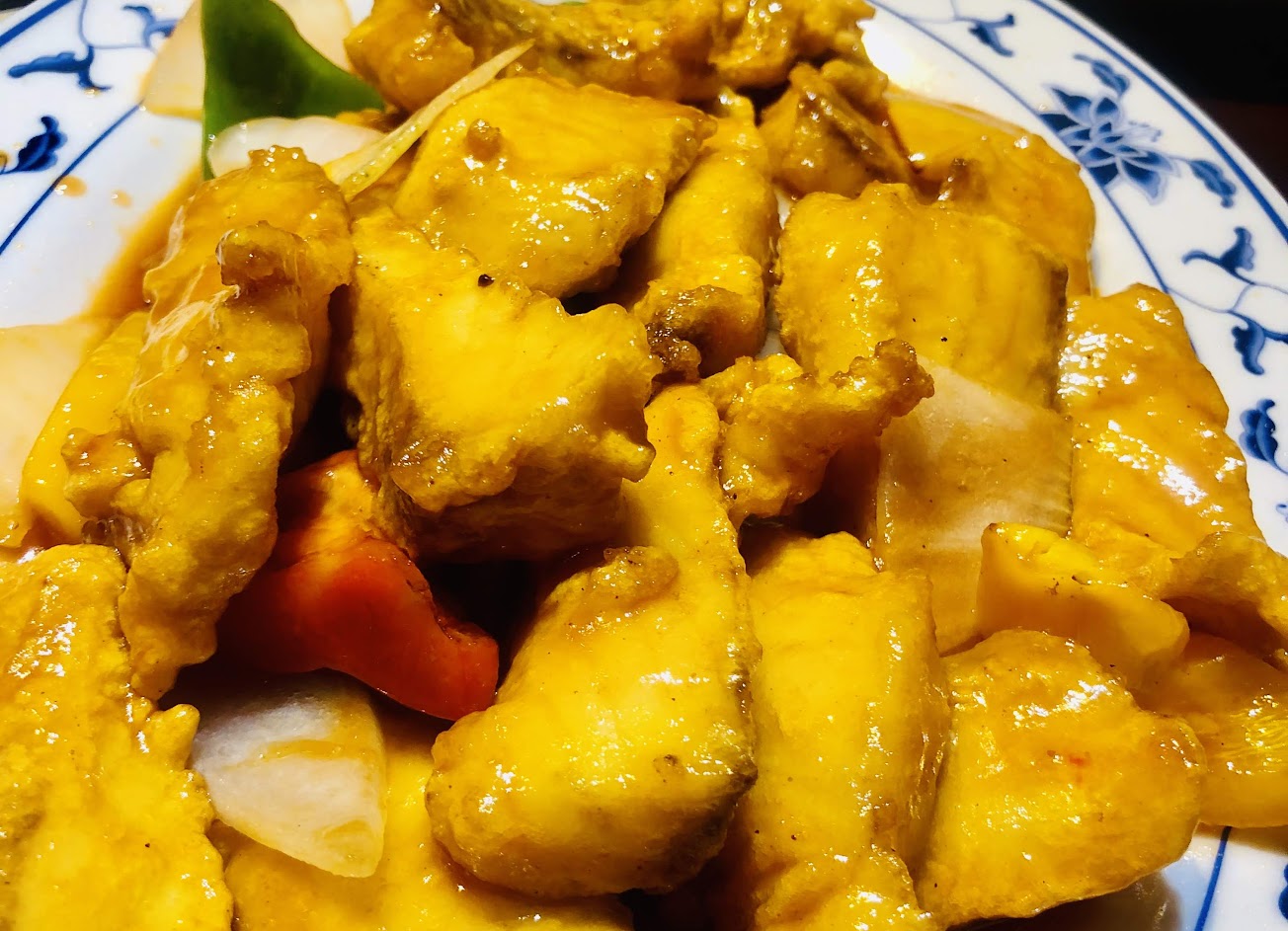 [推薦菜品] 金沙蝦球,外皮炸的酥酥的配上鹹蛋的蝦仁,非常好吃, 薑絲大腸,很有客家風味,