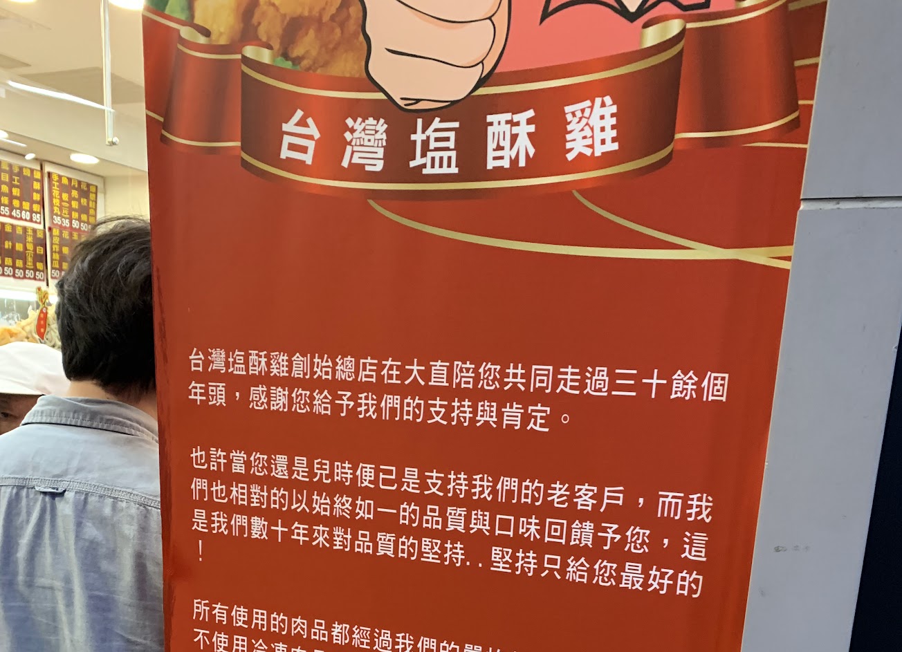 趁著人潮沒那麼多時,趕快來買,才不會等太久。在櫃檯前面的下方居然是鏡子,所以有了這張等待鹹酥雞的腳的相片? …