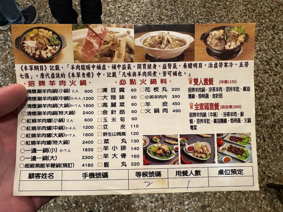 道地羊肉爐,店內冷氣吃火鍋剛剛好,假日中午用餐時間爆滿,今日因羊肉片無供應(切片機故障,改燉羊肉塊)!