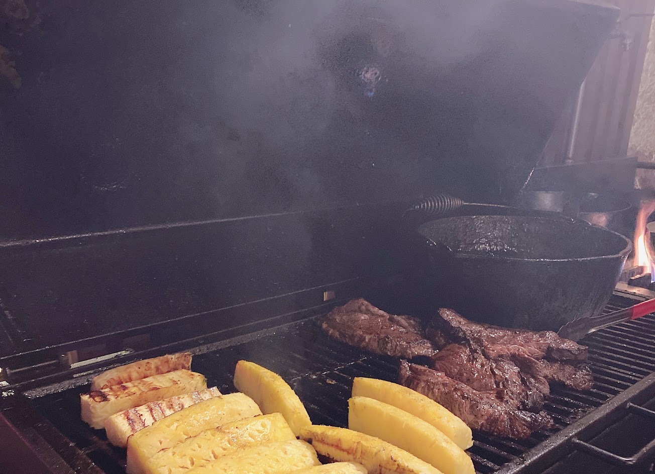 肋眼、烤章魚、烤肉都爆好吃。原來鳳梨這麼適合烤著吃。