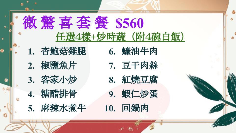 建議的餐點