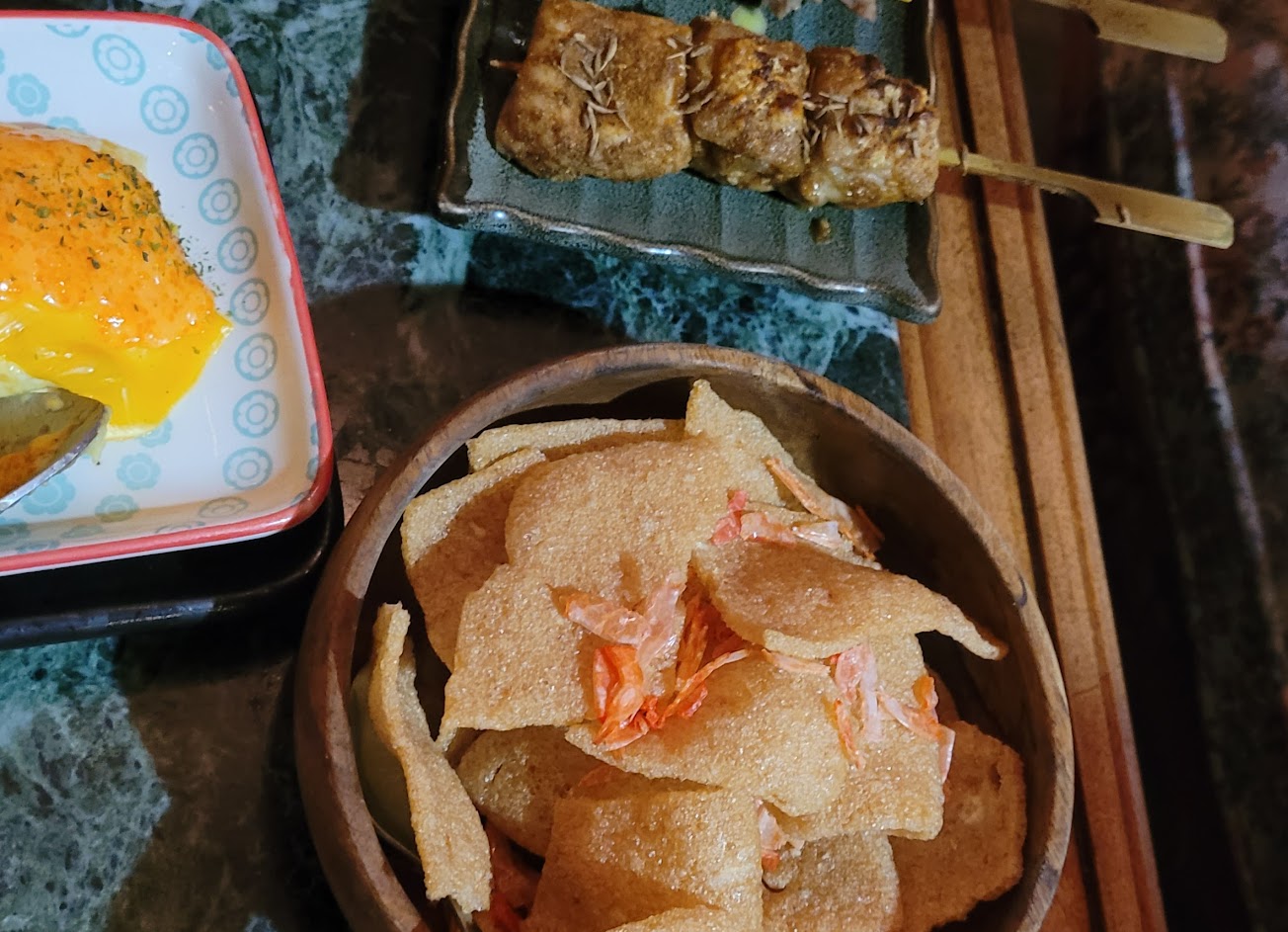 店的風格看起來像是網美咖啡廳,結果竟然是居酒屋,很有特色 平日晚上生意非常好,建議要訂位! 是掃QRcode點餐,餐點的名字不是很記得了~ 這次我們點了: