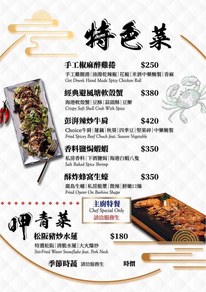 松阪豬炒水蓮 鳳梨松阪豬 松露薯條 冰棒蛋捲 海鮮綜合炸物拼盤