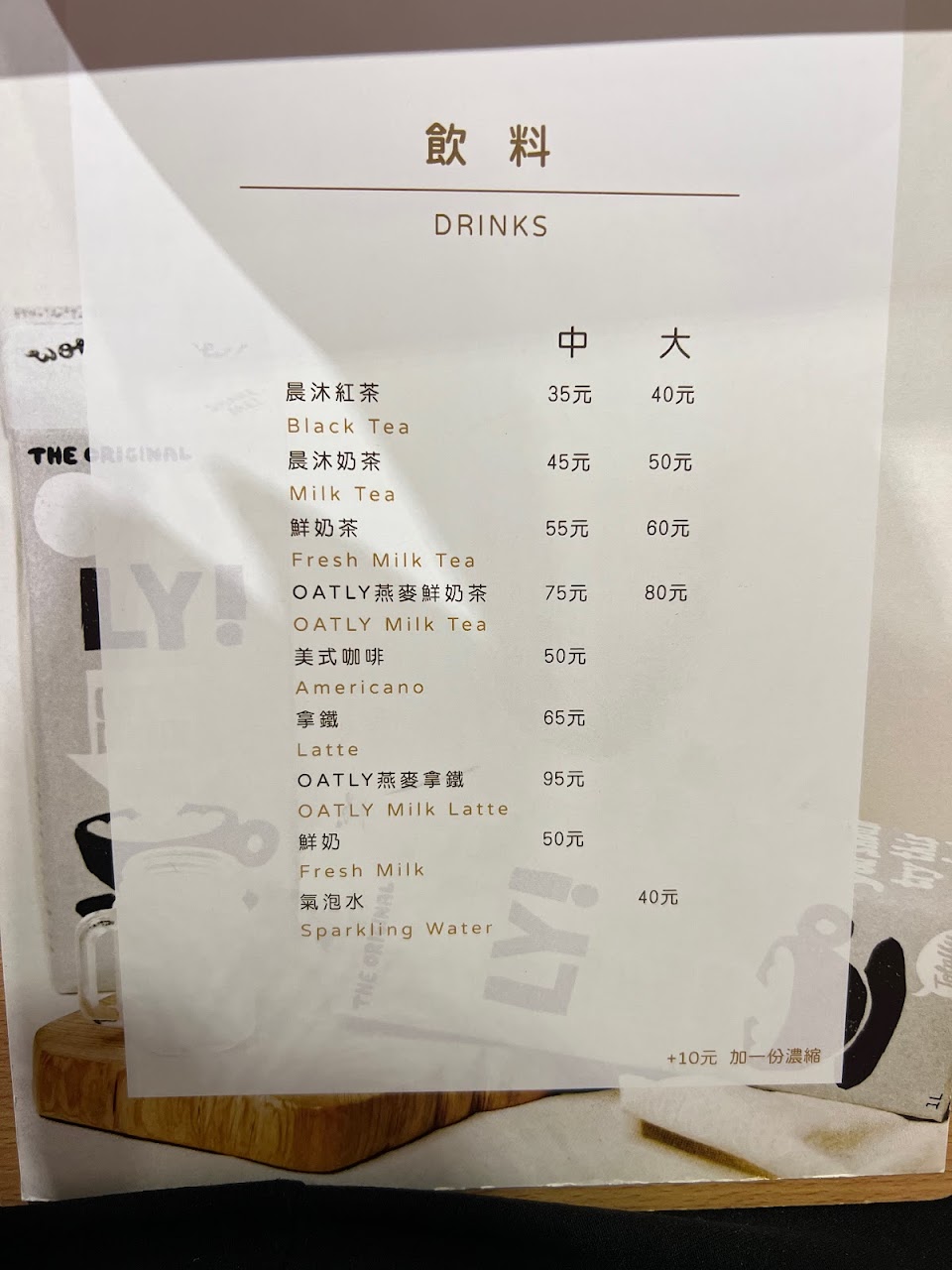 點餐:燕麥鮮奶茶、美式咖啡、咖椰吐司、雙蛋高麗菜蛋餅? …