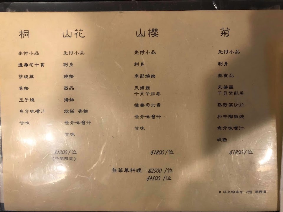 山花從四維路到樂利路再到信義路,一直是我日本料理首選,雖然無菜單的價位偏高,但食材新鮮又好吃,每次無菜單吃的也都不太一樣,算非常用心在餐點設計上。台北市吃了許多家無菜單的日本料理,這家算是首推!