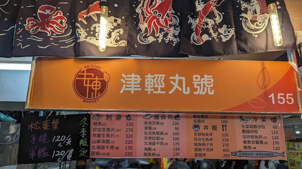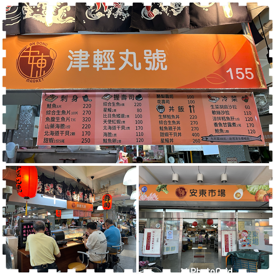津輕丸號位於安東市場內,平價高CP值的生魚片、丼飯、握壽司……日式料理,在市場內不用花大錢即可輕鬆享有日料店等級的生魚料理,就可以滿足。還有免費鮮魚味噌湯喝到飽,真是便宜又好吃的市場美食。