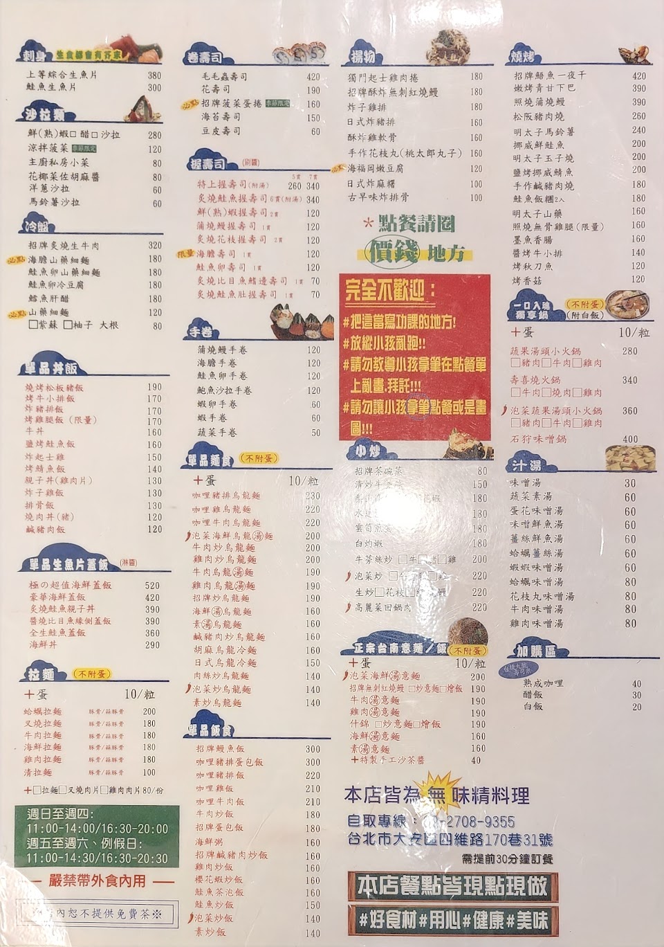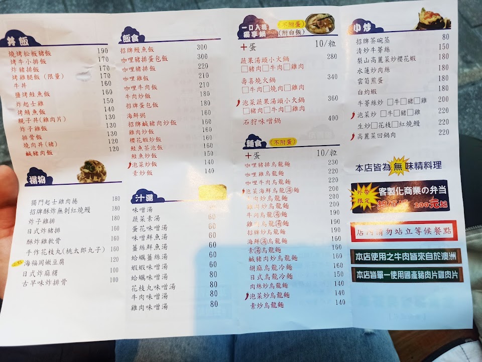 炒水蓮 親子丼 炒烏龍麵 鮭魚生魚片 招牌菠菜蛋捲