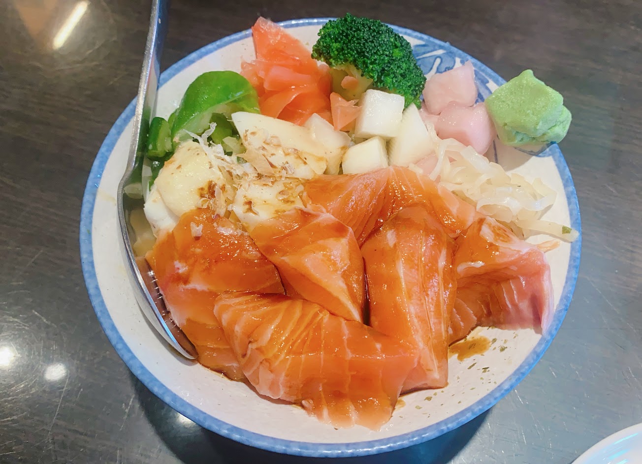 海鮮丼飯 鮭魚生魚片 招牌菠菜蛋捲