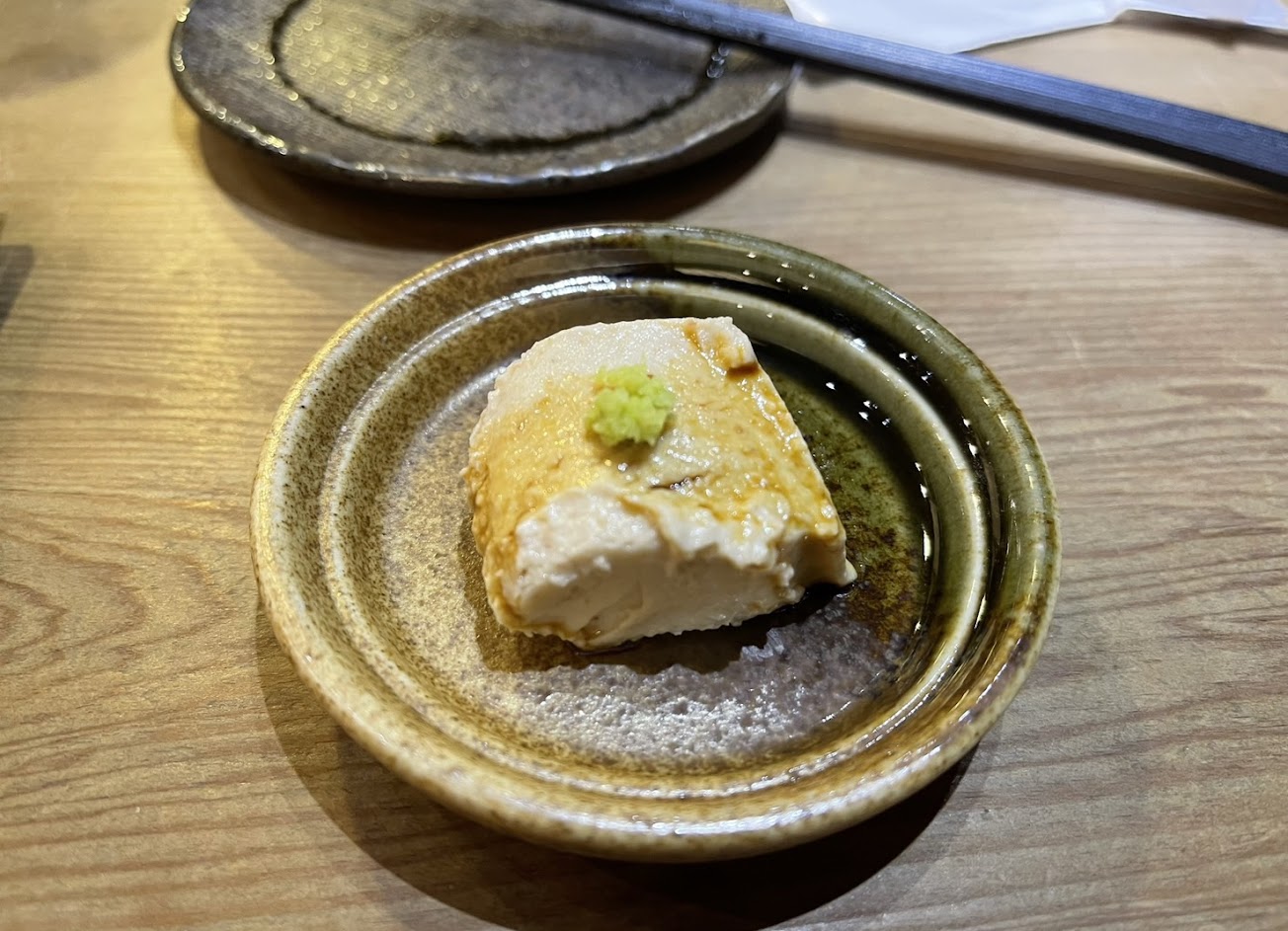 1. 《開胃菜》醋+髮菜還是海帶,酸酸甜甜的 2.《秋刀魚生魚片》配上醬油、蔥、還有紅色的醬,還不錯 3.《忘了什麼魚、牡丹蝦》牡丹蝦壽司好好吃 4.《干貝配海苔醬、比目魚鰭邊》干貝外觀看起來很厲害,但是我吃起來覺得還好,是還不錯但沒驚艷;比目魚超好吃 5.《青甘、鮪魚中腹、秋刀魚》青甘我覺得普通,沒特別愛,同行友人覺得好吃;鮪魚中腹我們兩人都覺得超讚;秋刀魚我們兩人都不太喜歡,我覺得有血味,是唯一一道不喜歡的料理 6.《炸玉米、炸牡蠣、炸年糕》三個都超好吃,尤其是炸年糕,超超好吃 7.《海膽 鮪魚泥 海苔 握壽司》我覺得還好,朋友覺得很好吃 8.《腰果泥豆腐》超好吃,我好愛 9.《炸蝦 鮭魚卵 松露 茶碗蒸》我覺得還好,友人覺得超好吃 10.《和牛壽喜燒+飯》超超好吃,和牛、醬、飯圈都很讚,飯很完美,每粒不會黏在一起且口感很棒,唯一美中不足是覺得飯有點少,下次會想在這道上之前問問能不能飯多一些。 11.《有蝦頭的味噌湯》普通還不錯 12.《黑糖奶酪》好吃