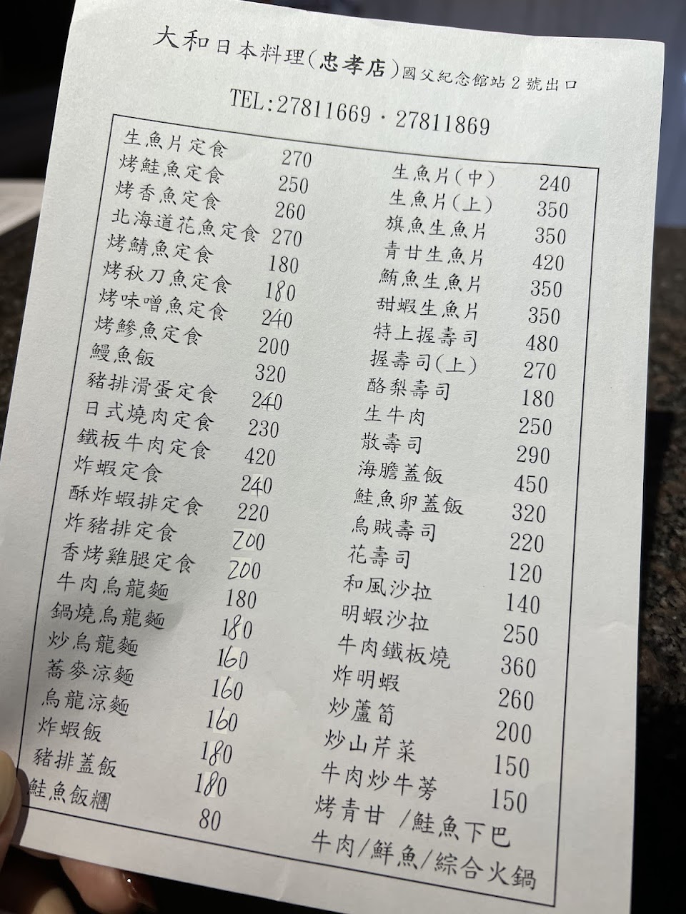 2024最新在地推薦餐廳的菜單_大和日本料理忠孝店的菜單、圖片