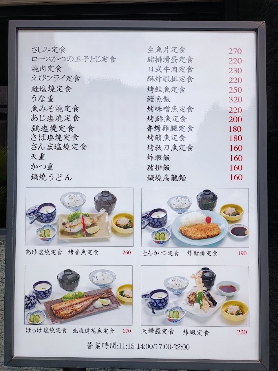 生魚片定食 炸豬排定食 炸蝦定食 炸蝦飯