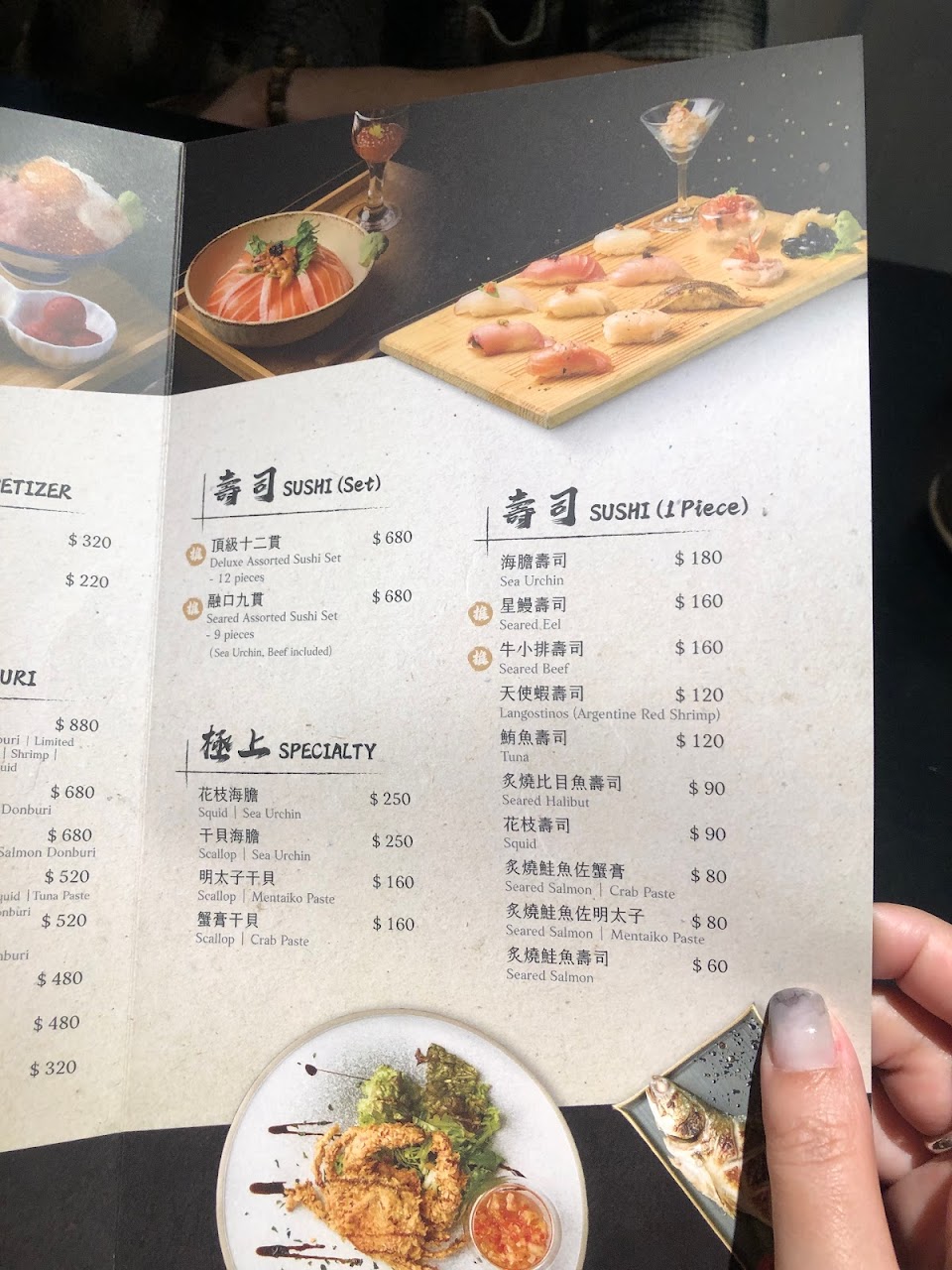 5個人、還有5歲外國小朋友,只有吧台桌吧台椅稍微比較不方便一點;食物、菜單說明詳細,只是料理的師傅可能要專心備餐,在板前比較沒法回答我們的問題。