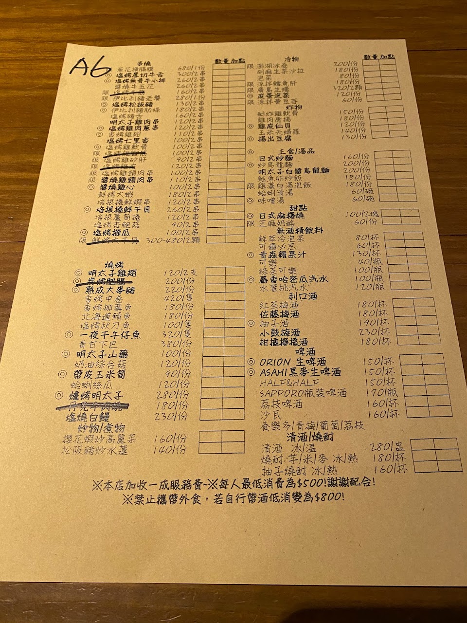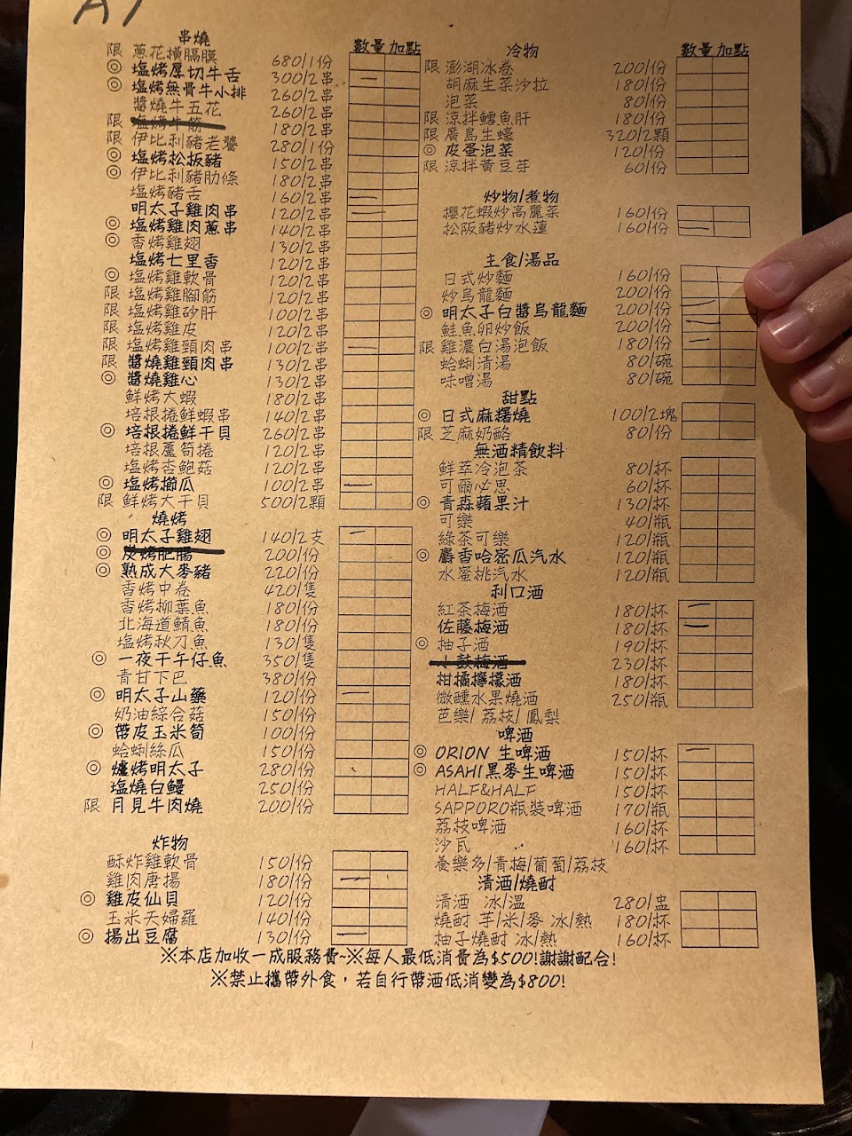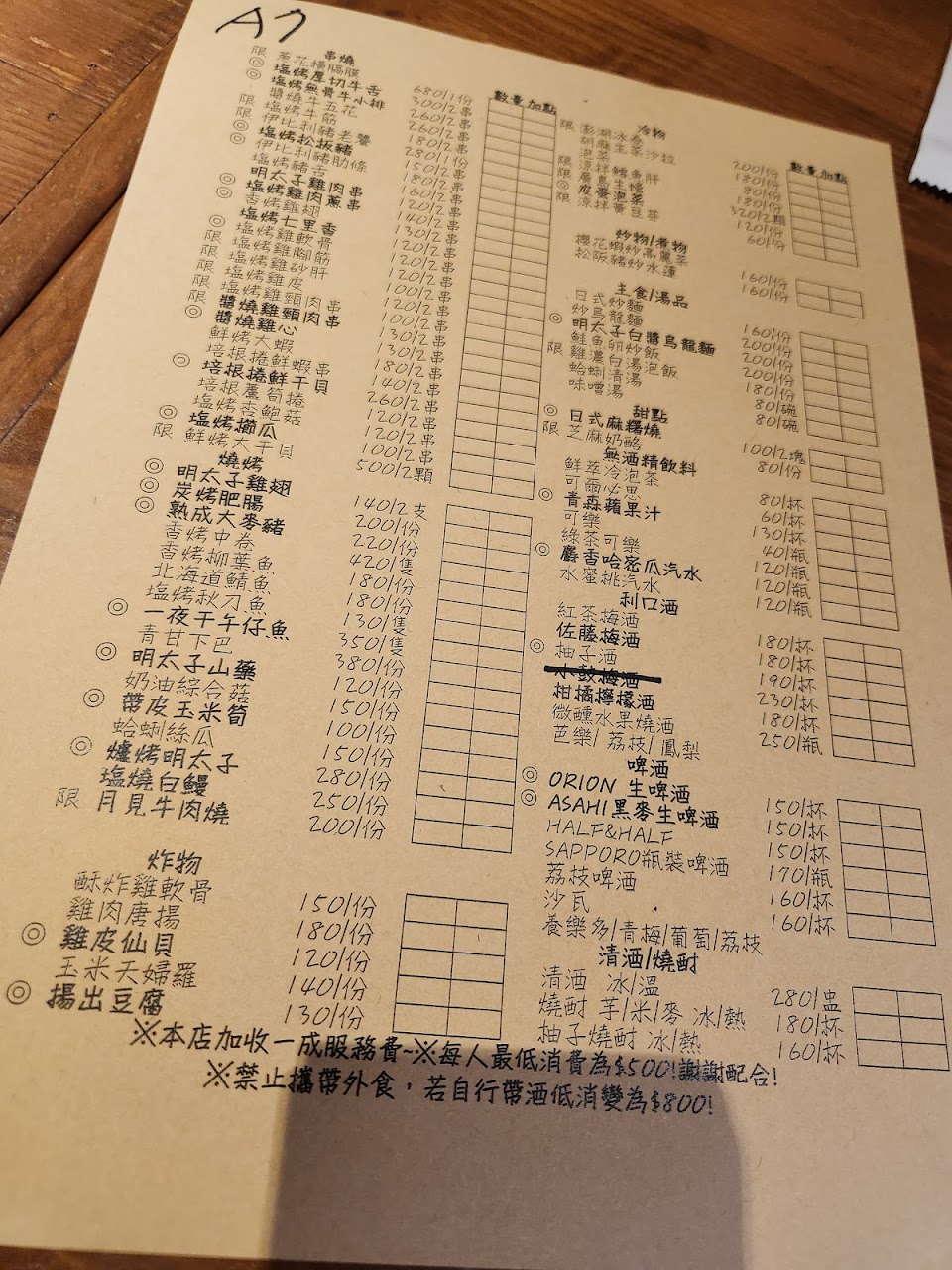 食物還ok,但在價格上就不多做評論,因為普遍來說居酒屋的餐點單價本來就偏高,雖然每人低消500,其實隨便點一點就到了。