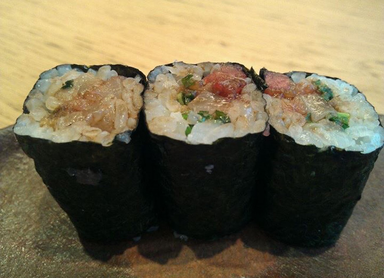 他每天從築地訂購的食材以及他投入的時間和精力都令人驚嘆,但讓他脫穎而出的是手握壽司和壽司。使用不同類型的醋,您可以得到完美煮熟的壽司飯。它具有完美的質感,可以緊緊地擠壓,但在嘴裡卻會散開。令人上癮。 。 。