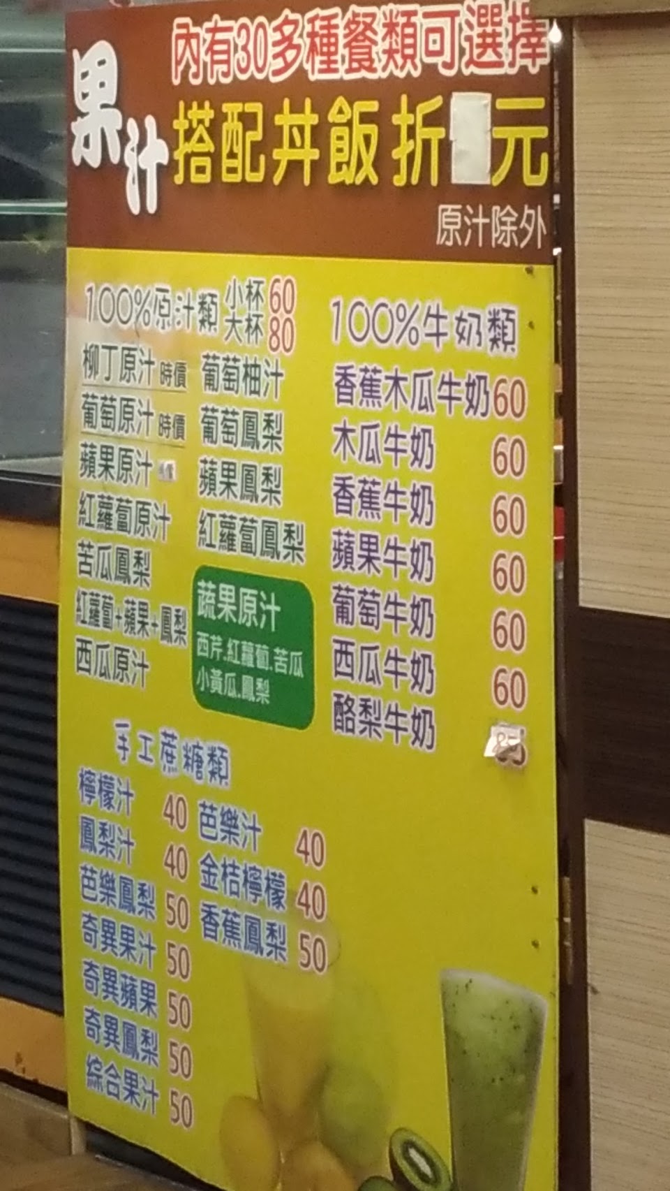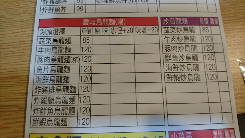 看見門口餐點照片進去點了100元的蔬食烏龍麵… 麵一上桌整個傻爆眼…也太不一樣了吧…問了一下店員怎麼麵裡沒附蛋…店員才拿過來…再問怎麼沒香菇…店員居然回…菜單今天才改…是有多扯…