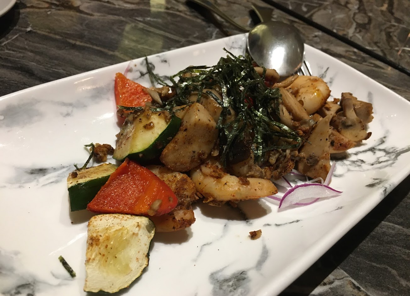 什錦野菇鮮蝦蒜蓉燒 適合下酒的一道,主要野菇比較多一點,蒜香完全體現在蝦仁身上,不過整道帶點微辣,搭配清酒?一起喝是個不錯的選擇。