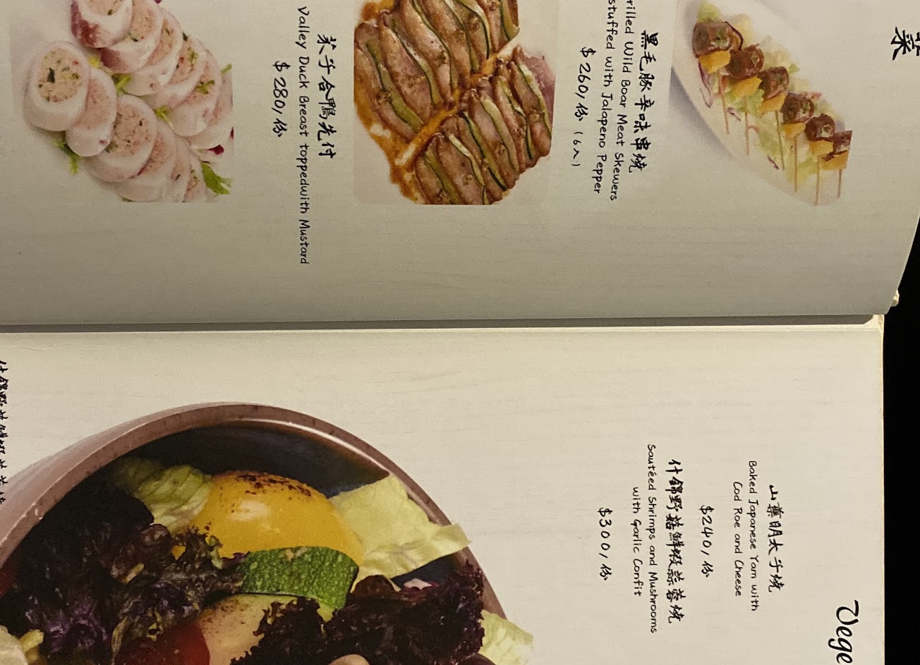 餐廳服務很好,氣氛佳,每道菜都非常好吃,Tapas: 輕炙海鮮串(爽口鮮甜)、紫蘇蝦球、牛五花瑪格莉特串(牛五花裡面包番茄,外層再撲上一層起司,最後撒上炸過<麵包㞕>不確定)。Appetizer 前菜:爐燒牛蒡松阪豚脆餅,霜降中卷佐黃瓜(口感層次豐富)。南瓜豆腐(南瓜泥軟綿入口即化,像豆腐一樣)。Nigiri握壽司:鮭魚卵握、馬糞海膽握。 Grill 烤物:肥蝦蟹膏豐味(上面烤過的海膽吃起來像鹹蛋黃)。海鮮胡麻涼麵。日式牛肋羅宋湯、大葉蛤蠣湯。