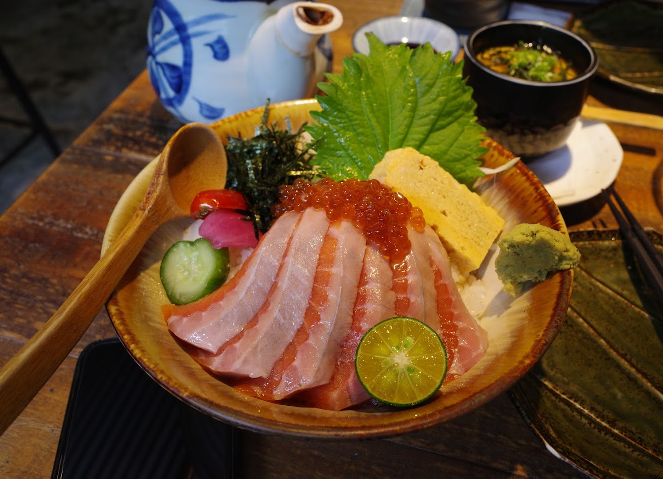 隱藏小店生魚片都很新鮮 會有沙拉、飯前小菜(烤魚) 明太子的餐點都蠻推薦,不會太膩口