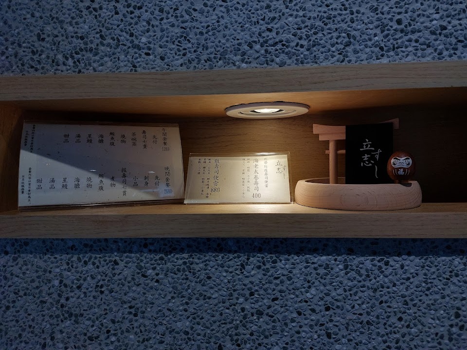 環境親切舒適,店內擺設很別緻,廁所拍照超美?壽司份量整回合吃完大約8分飽的份量,只是附近不好停車,不然會想再訪。