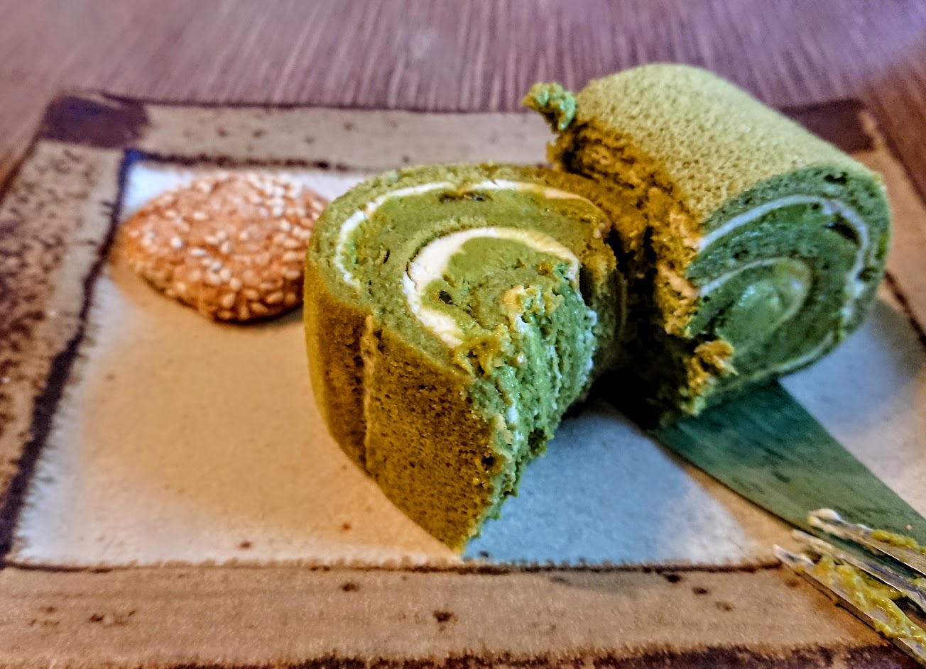 柚香抹茶的蛋糕捲 …… 這大概只有二到三顆星 沒有蛋糕的口感,不是鬆軟的蛋糕體 感覺是太濕 重乳酪還行,上面放的焦糖片是比較厚的,也有再加鹽帶出味道,不過對我而言還是覺得整體口味太重了點,吃到後面有點膩 下午茶有個茶泡飯的選項很不錯 ,… 如果再多點茶香就更好