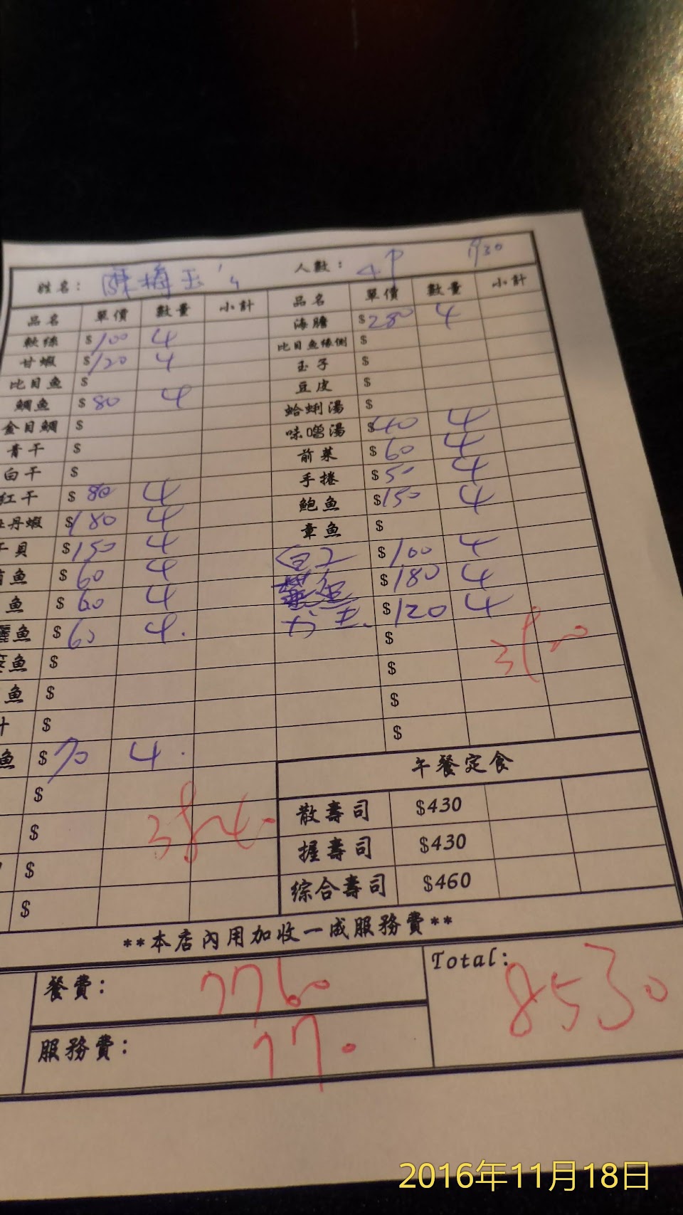 2018.11.08=學長推薦,久遠前吃過,現在生意不錯,不是很好定位的壽司店。味道精緻度吃起來還是比彧割烹差了一級,不過付錢的時候,看到1/3的價格,還是不爭氣地約了下週再來。