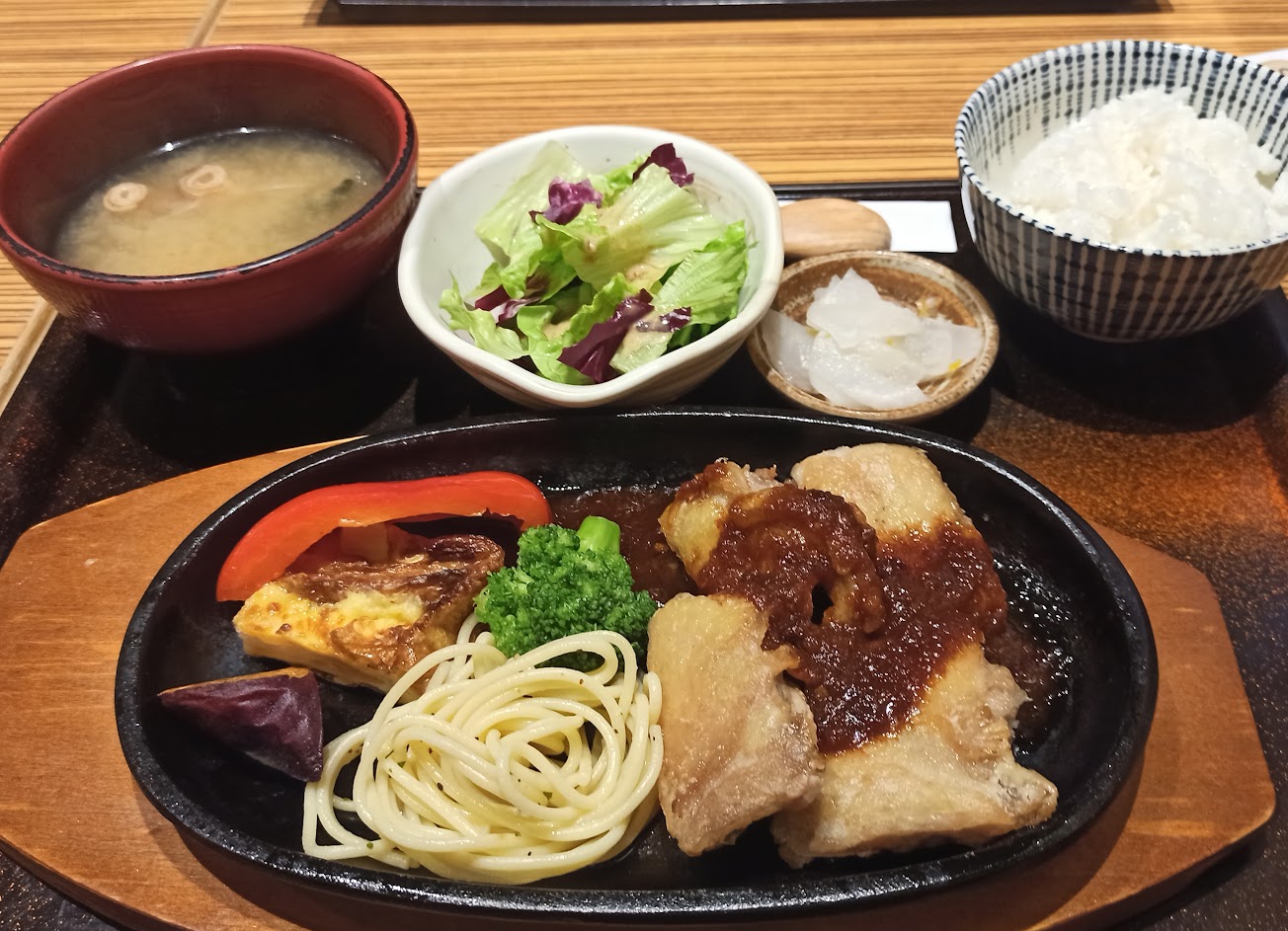 口味多樣化,白飯,味增湯,醃製小菜,可續加。