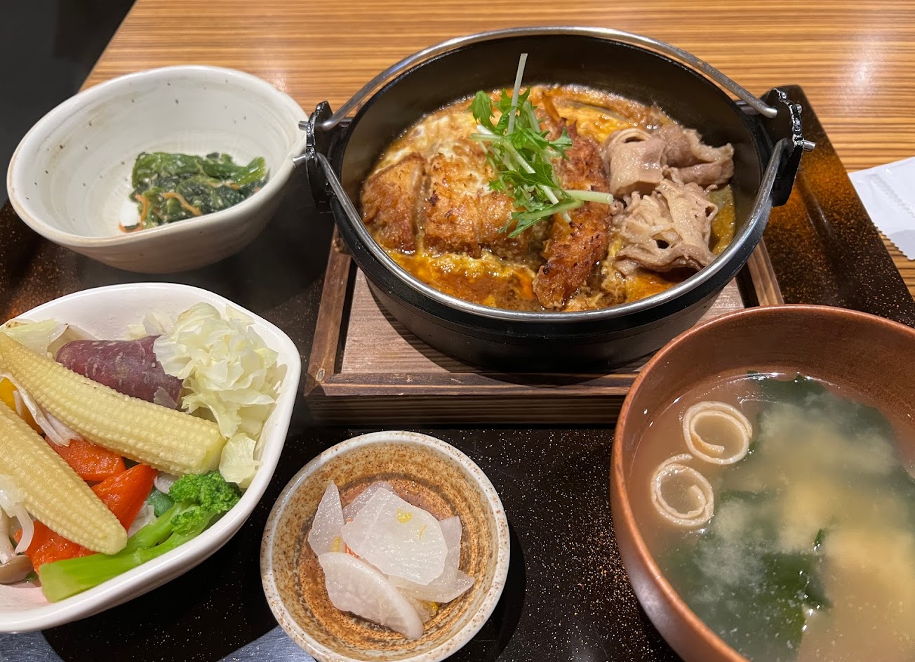 每次都點豪華煮定食 $330 有炸豬排、炸蝦、牛肉 實在下飯到不行 而且那個飯真的很Q 可以免費續湯續飯續小菜 小菜是柚香白蘿蔔 柚香明顯但只有一種小菜小膩 味噌湯有豆皮切條 不…不喜歡 附一小碟青菜 真的就是一小碟 完美體驗普通的食物放在很大的碗裡 就會顯得特別好吃 但其實沒什麼特別的