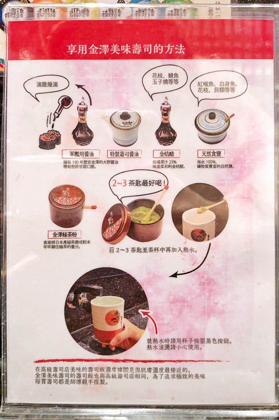 入座後非常貼心的說明桌上醬料相關使用方法,
