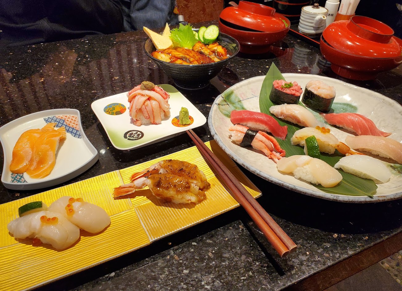 平日晚上六點不用排隊可以直接入場,壽司品項多,鮭魚入口即化、鮮魚湯很新鮮而且很大碗。
