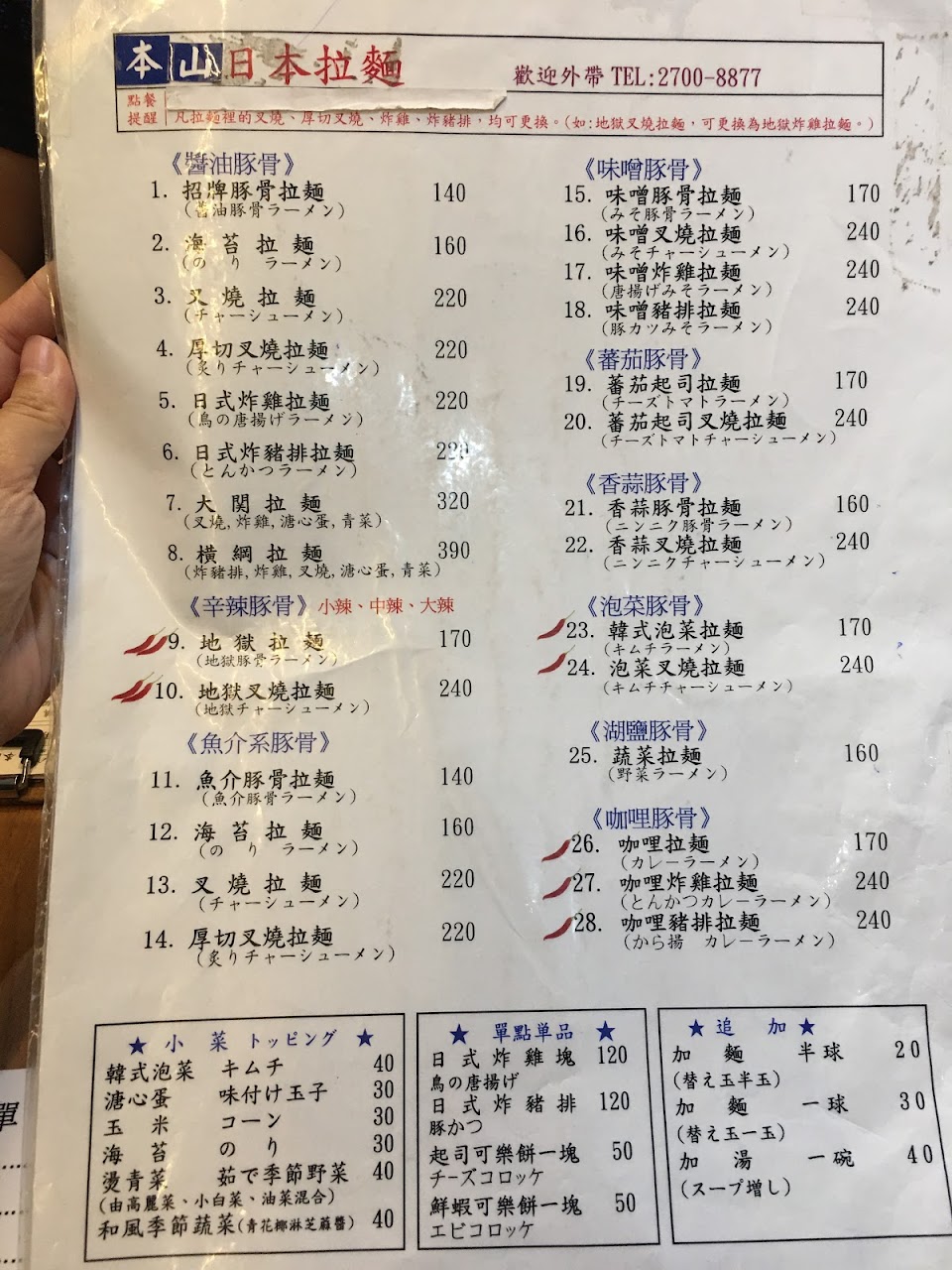 2024最新在地推薦餐廳的菜單_本山日本豚骨拉麵的菜單、圖片