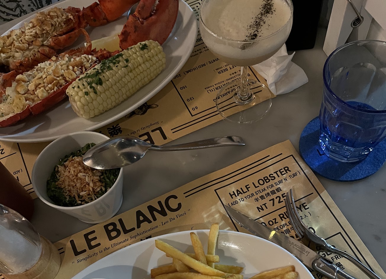 我覺得牛排沒有到特別驚艷,中規中矩,而且筋蠻多的,龍蝦可以選擇烤的或清蒸,這次選清蒸的感覺整隻有被鎖住鮮味,肉質很新鮮還很彈牙多汁,整隻吃起來很爽很夠味!但份量有一點少,兩個人來吃一個牛排一個龍蝦沒有到特別飽的感覺,有點可惜,可能期望有點太高!