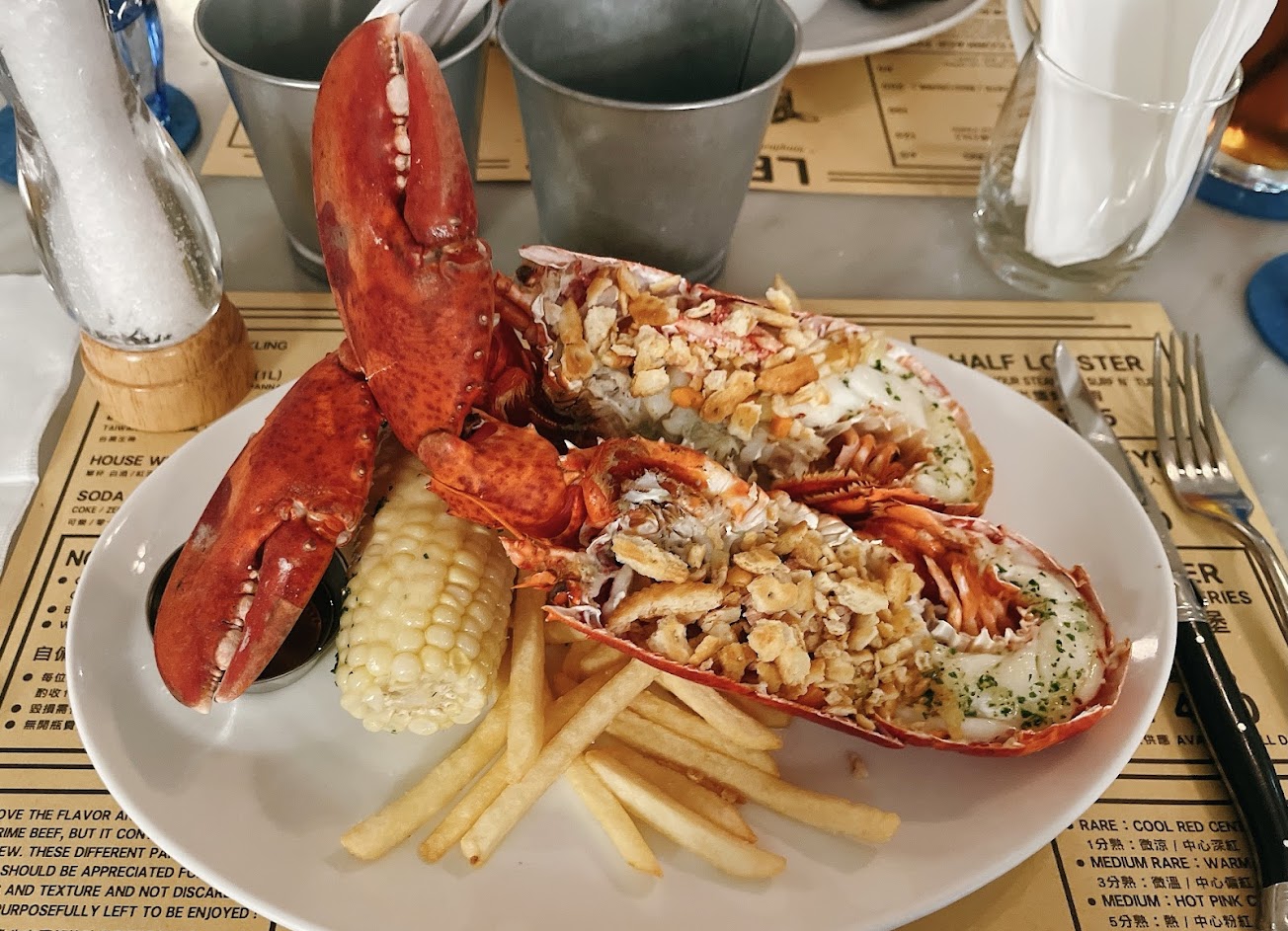 好吃!店內僅提供2種主餐:牛排與波士頓龍蝦。薯條份量多,絕對能吃飽。吃不夠的可以加點配菜。