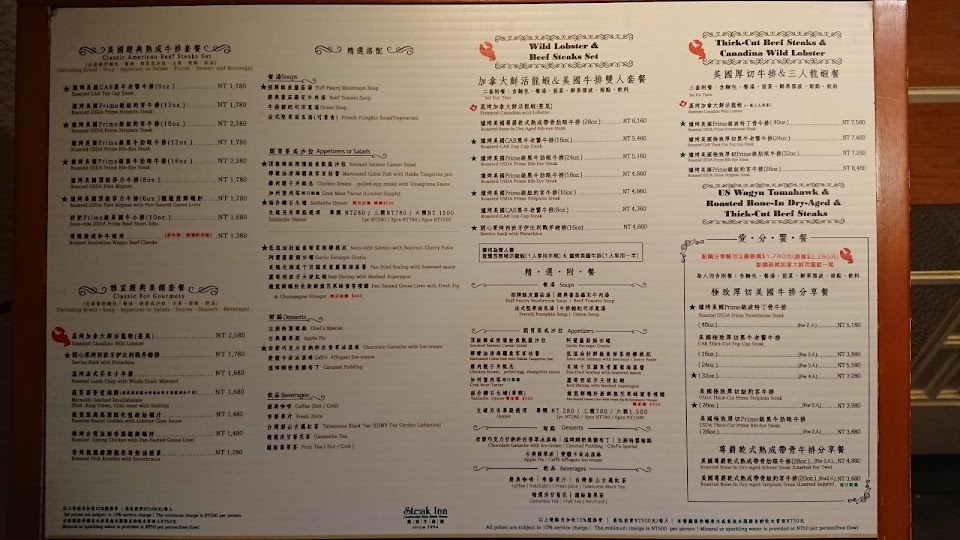 精緻的牛排館,供應牛排、海鮮料理、開胃菜、飲料與甜點。