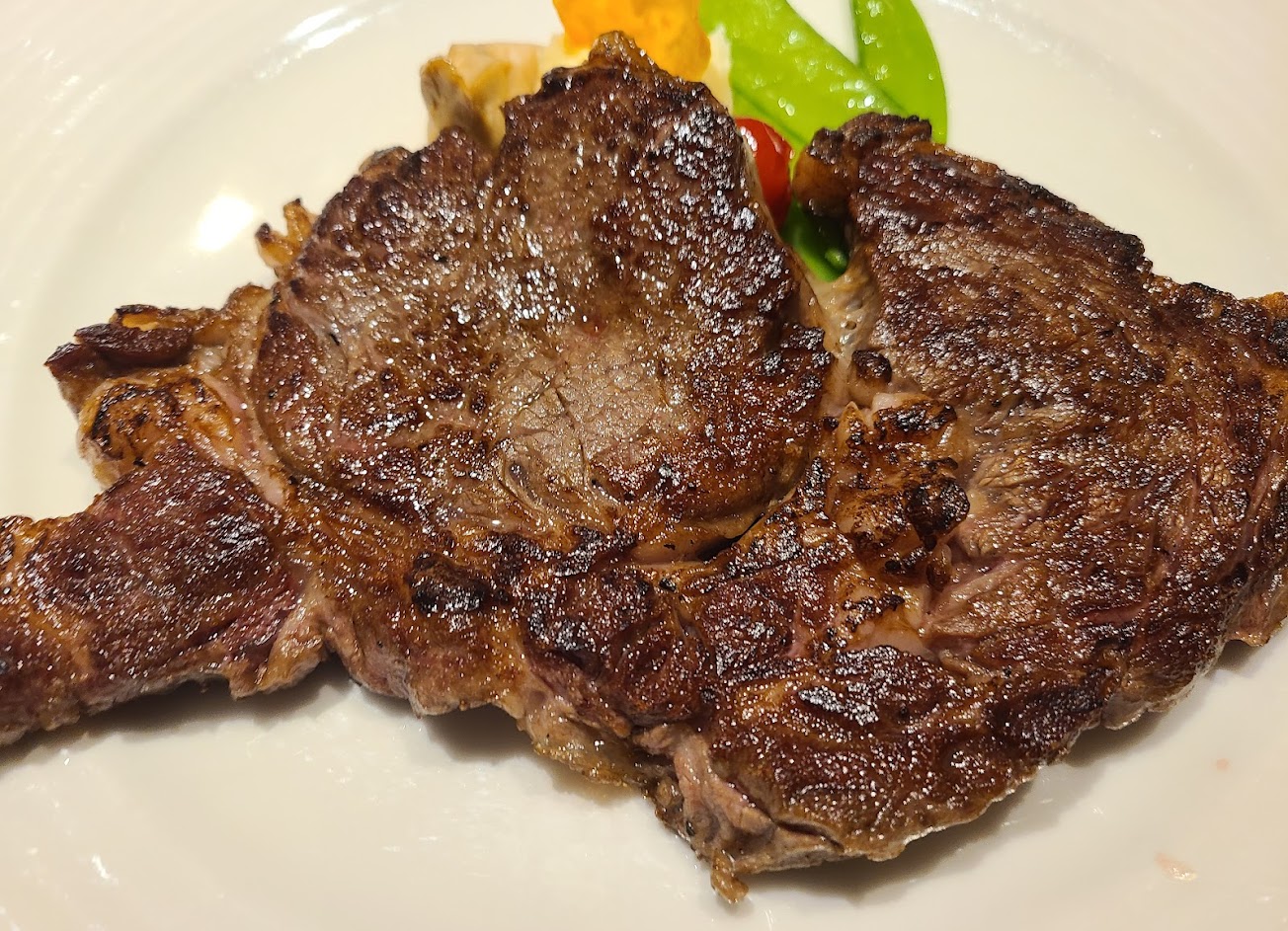 副餐的香煎干貝調味有點微妙口感過熟?主菜頂級肋眼牛排熟度肉質軟嫩,但配菜有點重口味及油膩,整體餐點的調味似乎不太合我胃口
