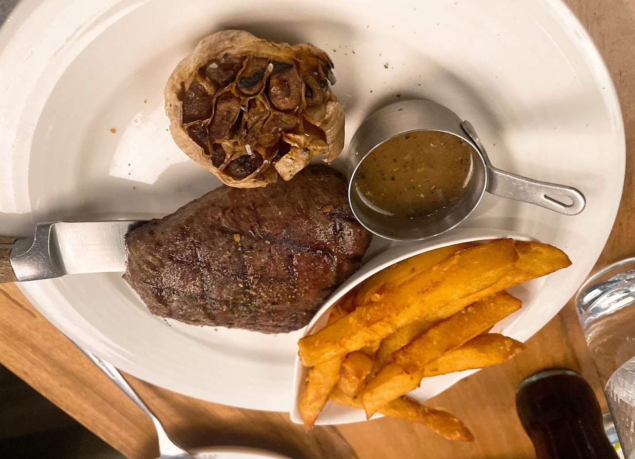 牛排普通,牛肉可能要在往上面的等級點,烤蒜球本身也沒啥味道,我還是比較喜歡炸蒜片,但豬肋排和蘋果派都超讚