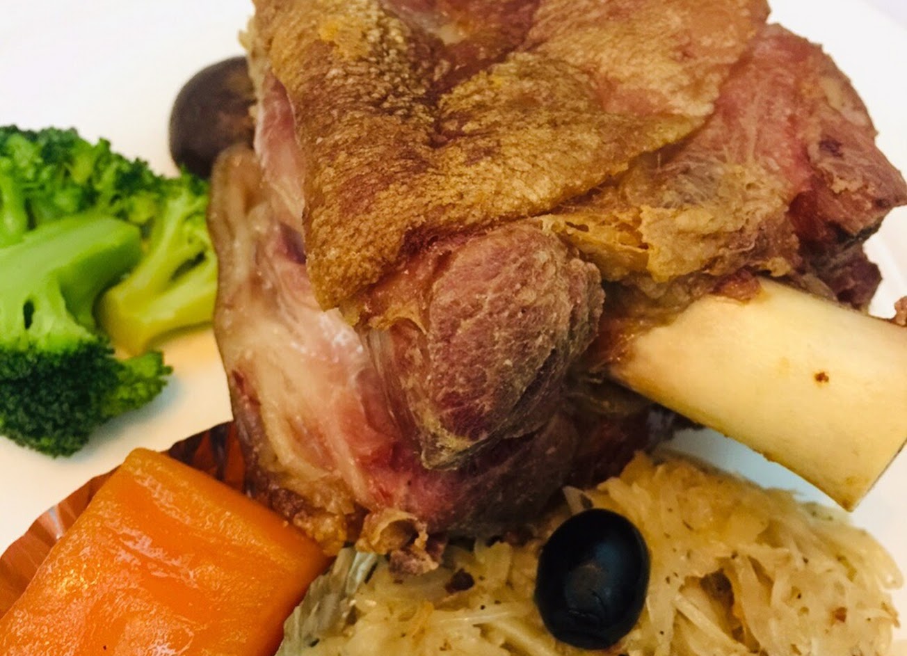 今日吃的主餐:豬排和羊排的肉蠻嫩的,而豬腳很酥脆,都還算不錯吃,但覺得沙拉吧的種類少了一些….