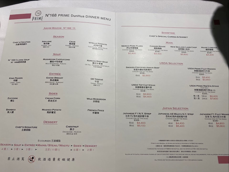 2024最新在地推薦餐廳的菜單_N°168 PRIME 敦化館的菜單、圖片