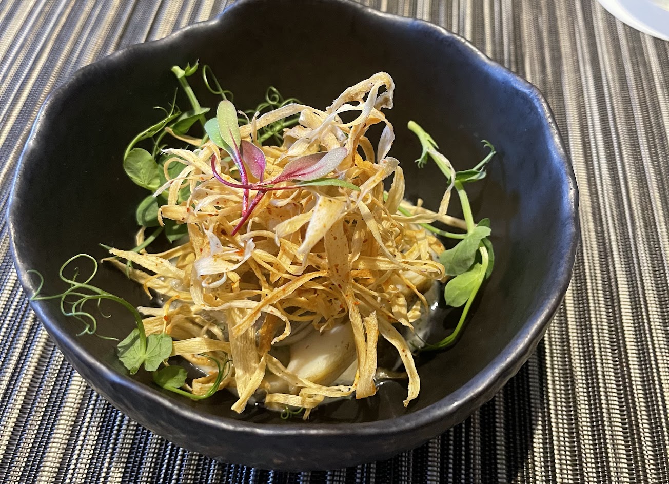湯品的海鮮天鵝絨,搭配吻仔魚與干貝柱,細膩順口非常不錯。