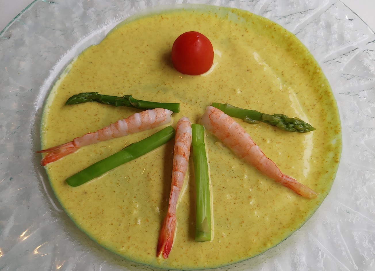 前菜優格鮮蝦時蔬的蘆筍與鮮蝦好吃,最喜歡酸酸甜甜的沾醬。