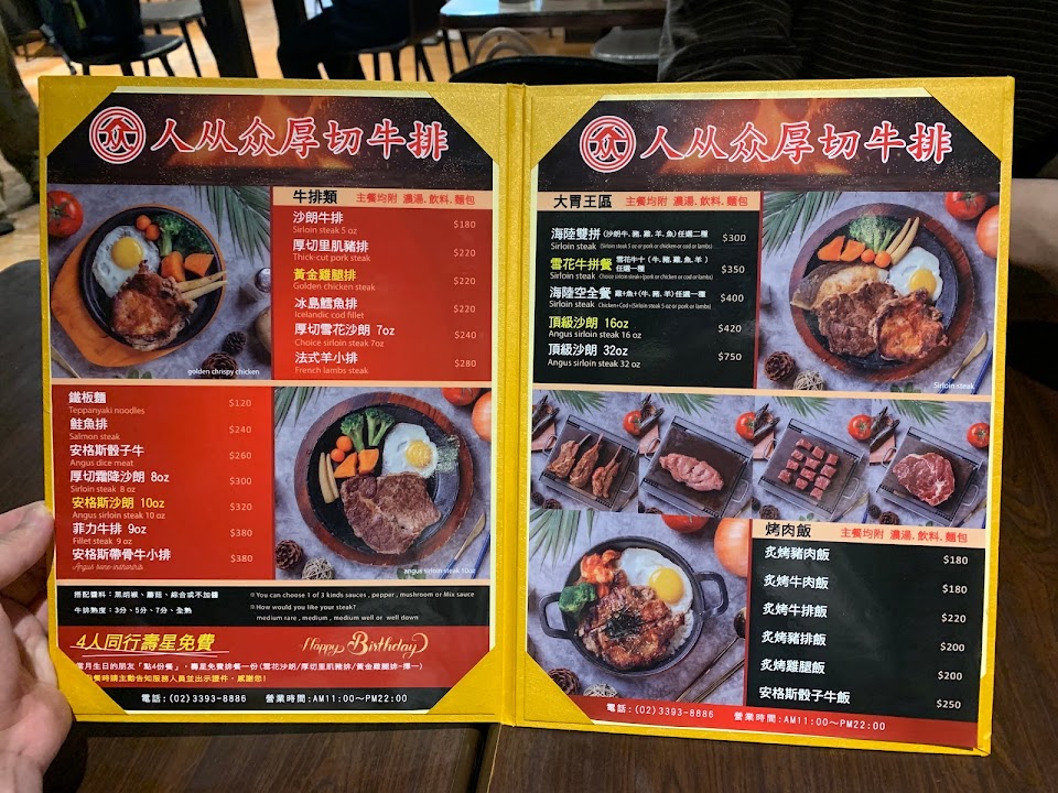今日特價:一份8盎司牛腩280新台幣。爆米花、麵包、冰淇淋、奶油任吃。 服務 內用 餐點類型 午餐 平均每人消費金額 $200-400 餐點:4 服務:4 氣氛:4