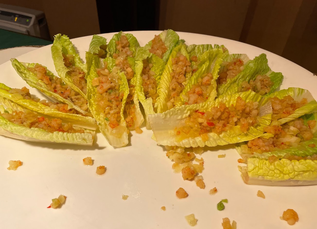 ? 生菜蝦鬆很香蝦Q好入口.鹹香油搭清爽蘿美船嘟嘟好吃。