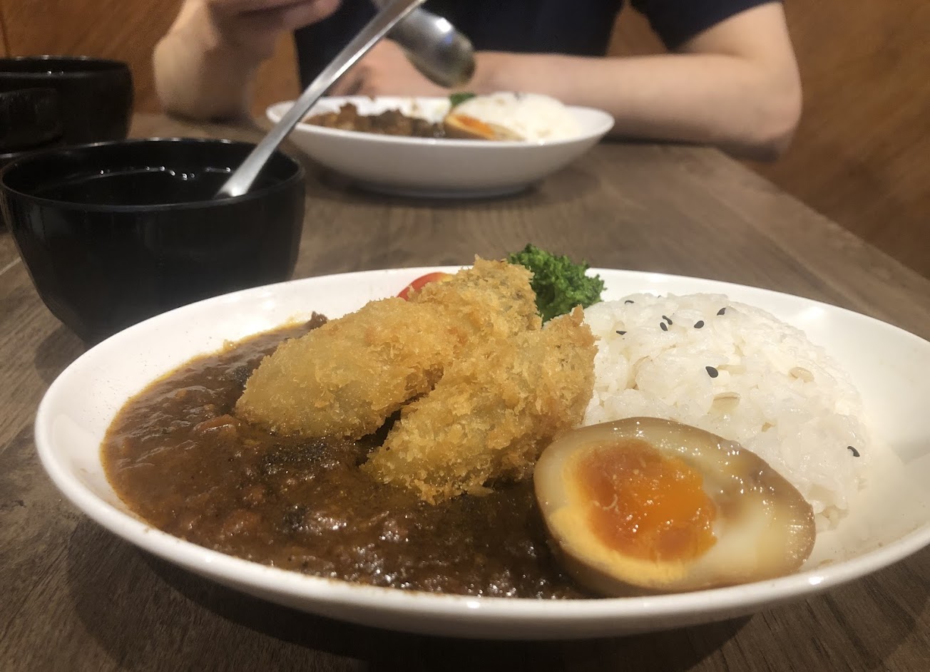 濃口的肉末咖喱,帶有甜味,和其他地方的咖喱不太一樣,很特別的味道。 搭配的炸牡蠣很驚艷,新鮮好吃? …