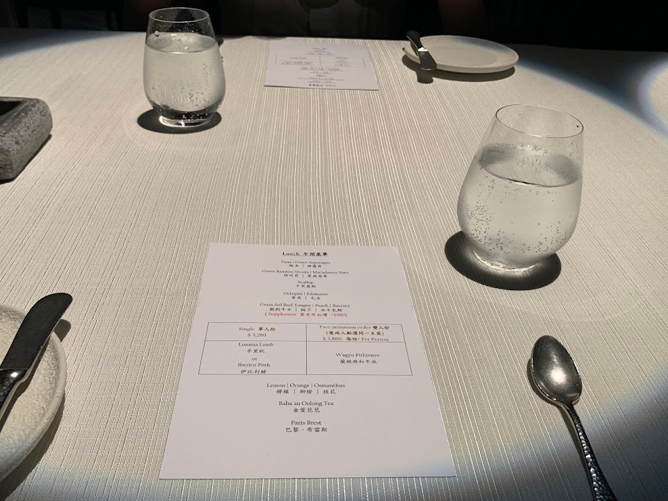 價格算是有點高。午餐套餐會比晚餐套餐再少兩道菜,但都可以加點,而我們這次只多加點一道菜。兩個人吃大概10000多一點。