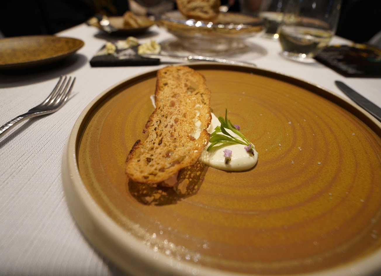 『伊比利火腿、菊芋、鼠尾草奶油』,把這三樣混再一起,一起放入口中,Oh~Yes,鼠尾草奶油的能量一口氣爆發出來,呼,開胃菜能吃到讓人有股暖意真的不簡單,配上越嚼越香的36個月伊比利火腿,優秀,讓人想念,9分。