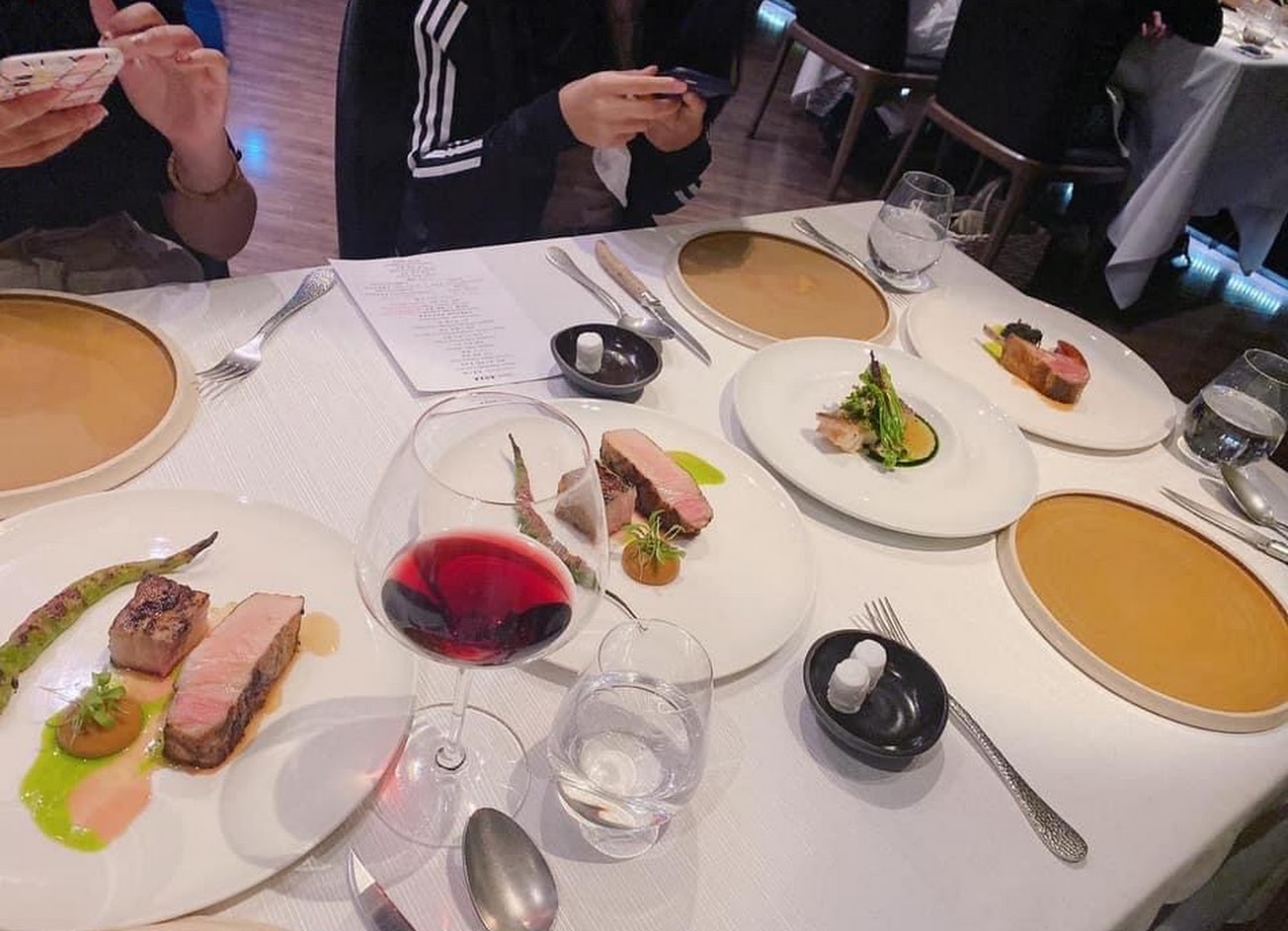 前菜覺得白巧克力煙燻鮭魚的口味與口感上處理的相當好?? 紅鹿塔塔是生鹿肉加上各式調味與配料點綴,整體上口感很有層次,但是全生的鹿肉難免需要鼓起勇氣 乳鴿那道蠻吃不出來要表達的是什麼 主食威靈頓算是蠻失望的,鴨肝的部分雖然很厚,但是與牛排一起入口實在還是偏油膩一點,應該要搭配個解膩的醬汁或配料中和一下,不過肉的熟度相當好,吃起來不會生氣但也不至於驚艷