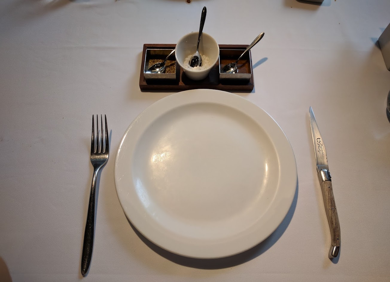 此次消費坐西餐區。 服務冷淡,未有任何的菜單介紹,只是遞給了菜單,後面詢問才知道甜點單說後面才上,一開始並不知道有甜點。 前菜與湯是非常美味的,可以續麵包,牛排與羊排主菜並不驚奇,反而失望了。 三人晚餐一萬上下嚐鮮就好,好險只是跟家人吃不是約會。