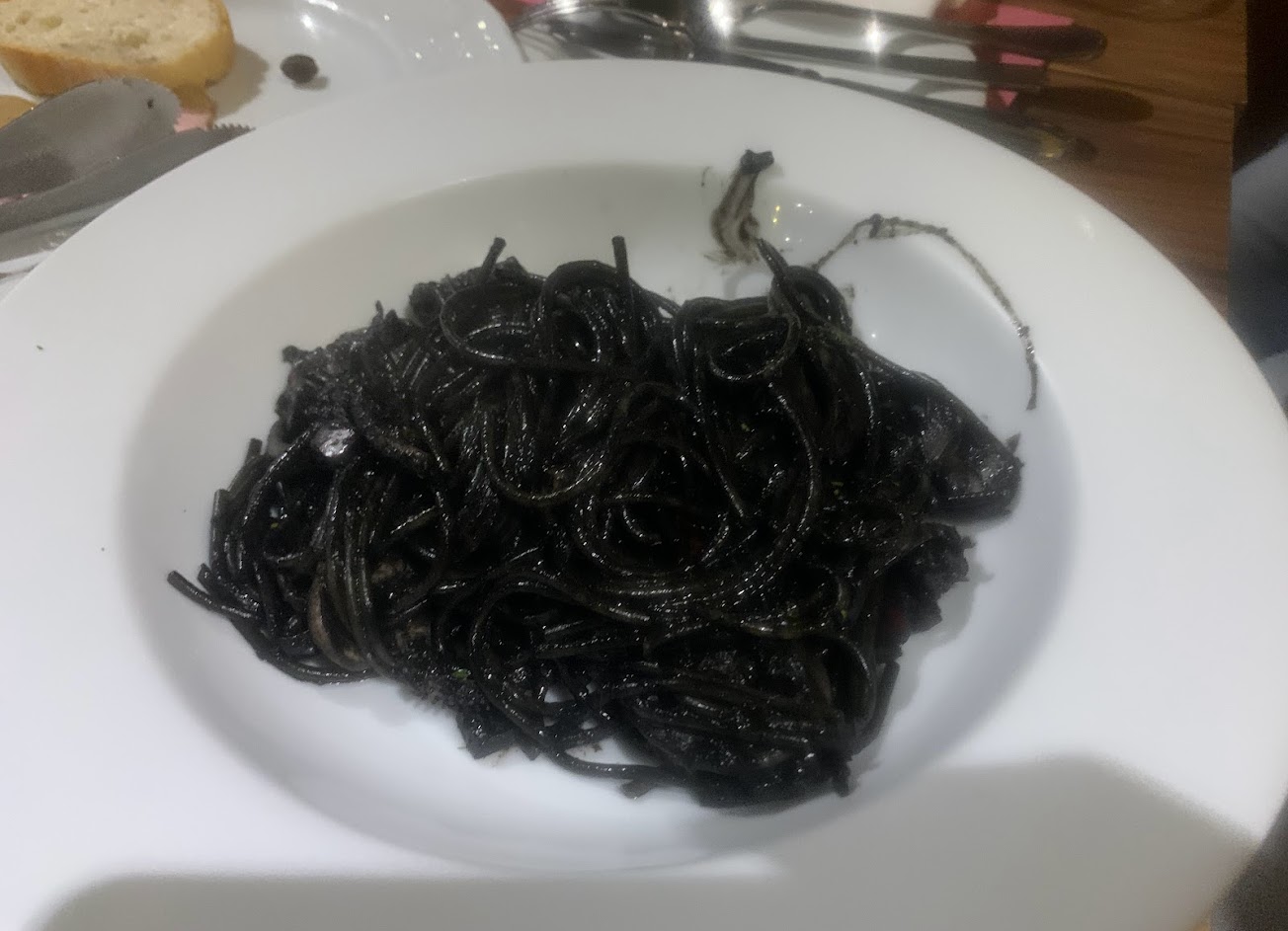 整份義大利麵黑的很徹底,店家使用墨魚汁與澎湖透抽製成的醬汁,可以感受到滿滿的海鮮味。