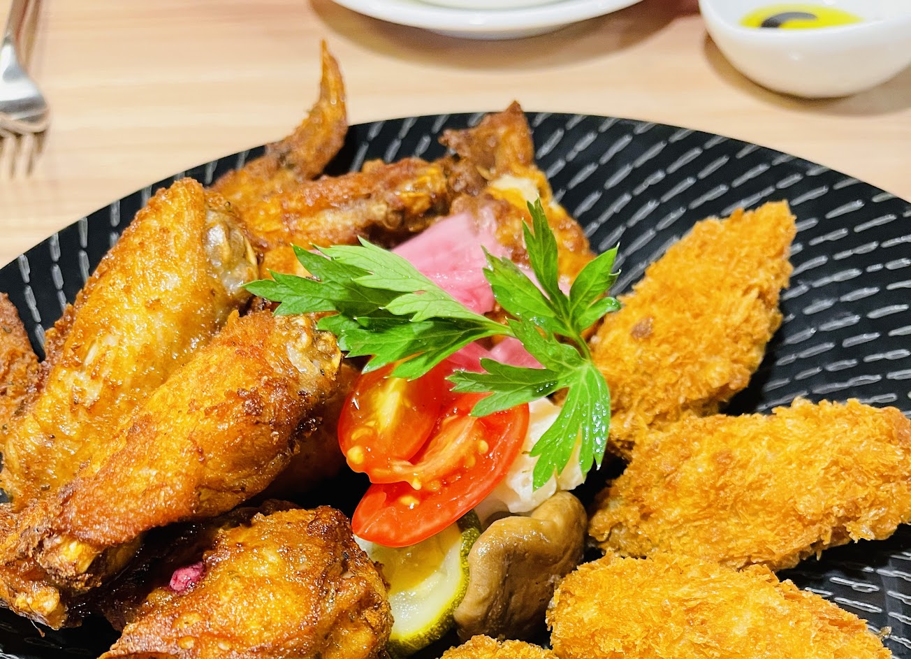 巴沙米可老醋菲力起司寬麵 油醋醬 套餐的炸雞翅