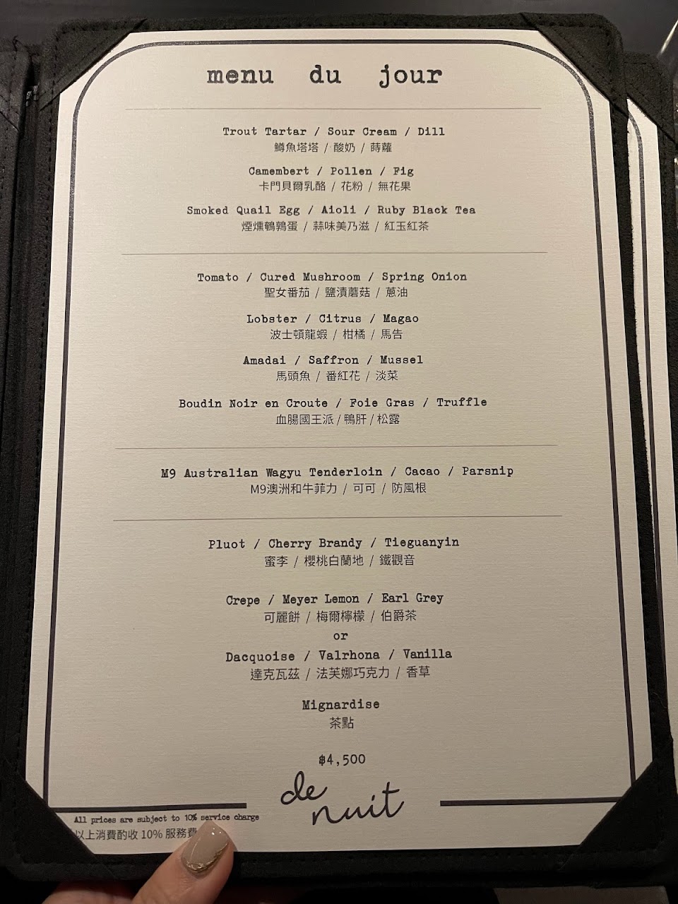 2024最新在地推薦餐廳的菜單_de nuit的菜單、圖片